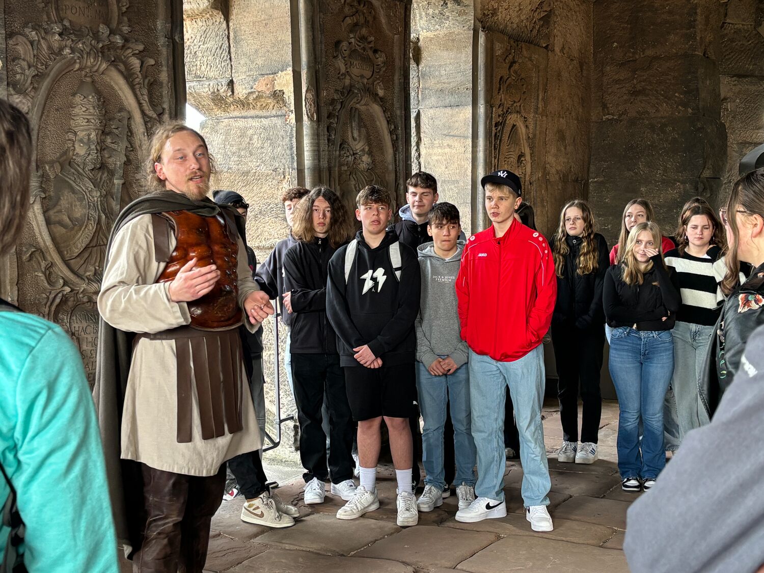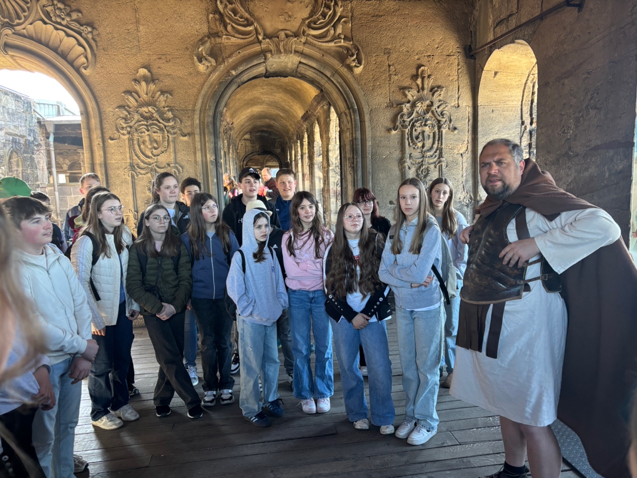 Ein weiteres Superlativ Triers ist das beeindruckende Ensemble des Doms St. Peter und die Liebfrauenbasilika, die zum UNESCO-Weltkulturerbe zählen. Doch in Trier gibt es auch profanierte Kirchen, in denen z. B. Shows gezeigt werden. Die Schüler erlebten die „Letzte Schlacht um Rom“ in Form eines Schauspiels, das vor einer großen Leinwand mit Animationen gezeigt wurde. Ein in der Nähe Triers geborener Germane, der dann ins römische Heer eintrat, machte die Wirren und geschichtlichen Konstellationen in dieser Zeit nachvollziehbar.