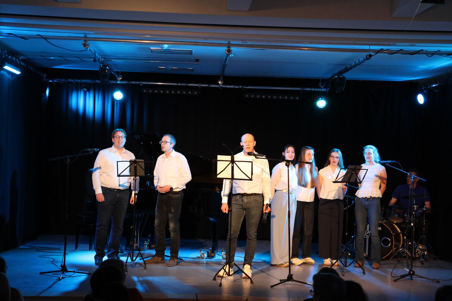 Herr Effenhauser, der alte Showhase, ließ auch bei der diesjährigen Ausgabe von Showtime seine vielfältigen Talente wirken. Eine neue Seite konnte das Publikum entdecken, als er im Grunge-Pullunder den legendären Synth-Rock-Song "Narcotic" performte. Auch Herr Riederer und Herr Skupin wagten sich auf die Bühne und zeigten ihre Vielseitigkeit.