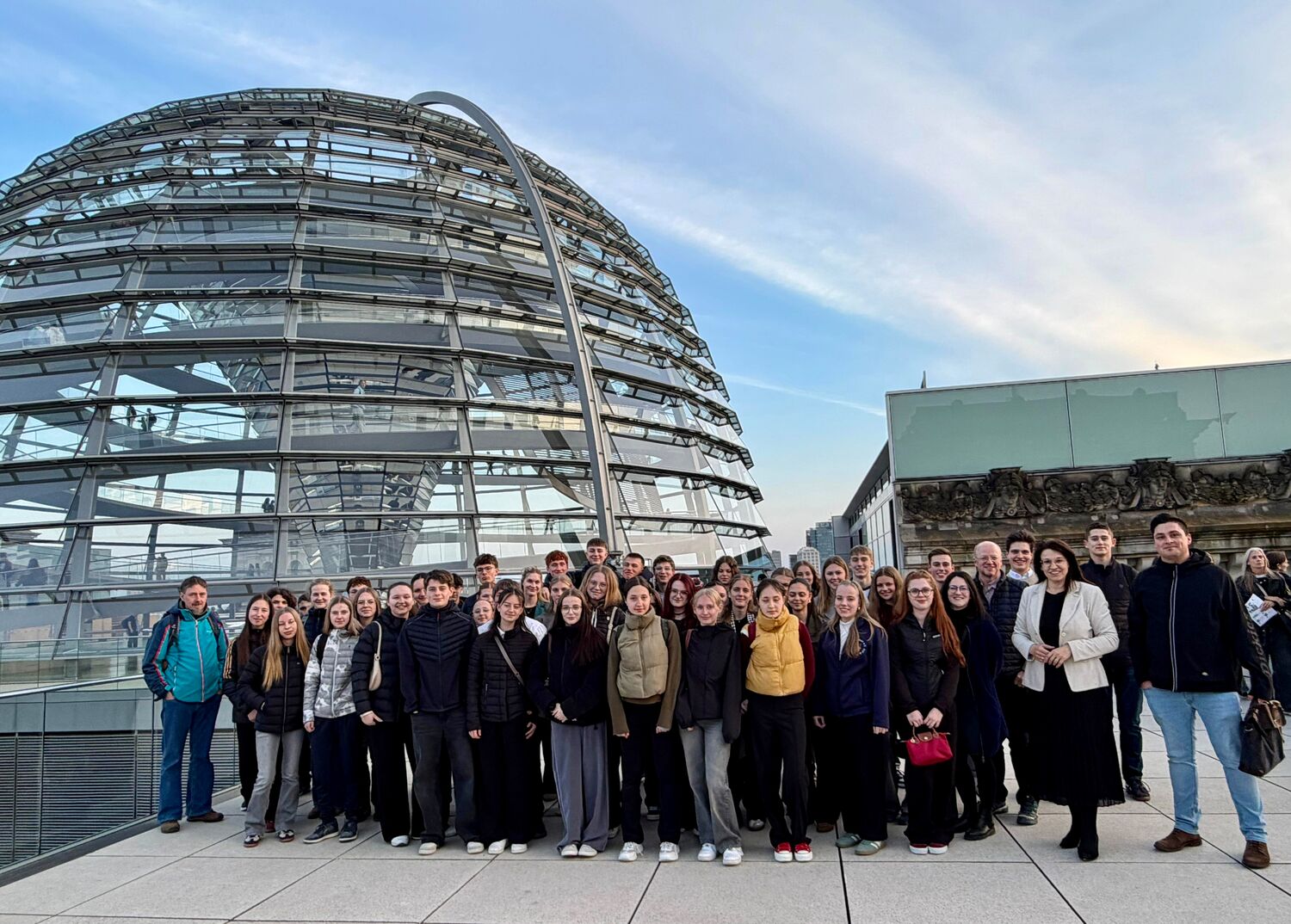 So begaben sich die 11. Klassen in der Woche vor den Osterferien gemeinsam mit ihren Lehrern und organisiert von der Fachschaft Politik und Gesellschaft in den Norden, genauer in die Bundeshauptstadt Berlin. Dort begann alles mit einer Flussrundfahrt auf der Spree bei strahlendem Sonnenschein. Erste Eindrücke der Großstadt konnten vom Wasser aus gesammelt werden, bevor man richtig in die Politik eintauchte und den Deutschen Bundestag besichtigte. Beim Durchschreiten des Parlaments, dem Herzstück der bundesdeutschen Staatlichkeit, wurde das Wissen der BSGler über Aufgaben und Befugnisse des Verfassungsorgans aufgefrischt. Danach stellte sich Frau Engelhardt-Kopf, Abgeordnete und Staatssekretärin für ein reges und lehrreiches Gespräch zur Verfügung. Dieser erste, so erlebnisreiche Tag fand seinen Abschluss mit einem atemberaubenden Blick über die Hauptstadt von der Kuppel des Reichstagsgebäudes und einem Abendessen im „Lampenladen.“