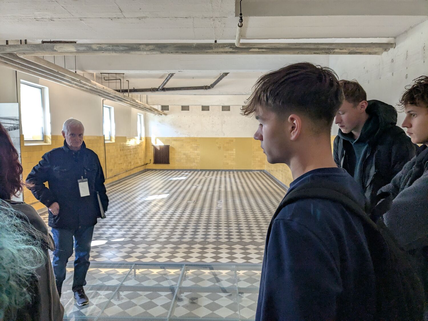 Das technokratische Lagersystem sowie die durchplante Vernichtung menschlichen Lebens wurde in den museal hochwertig aufbereiteten Ausstellungsräumen vertieft. Wichtig war für die Schülergruppen zudem die darin erneut erfahrbare Tatsache, dass es sich bei den Gequälten und Ermordeten um tausende von Einzelpersönlichkeiten handelt – mit einer eigenen Vorgeschichte, einem individuellen Leben, das Freunde und Familie, Liebeskummer, Urlaubspläne und einfach Menschsein bedeutete.