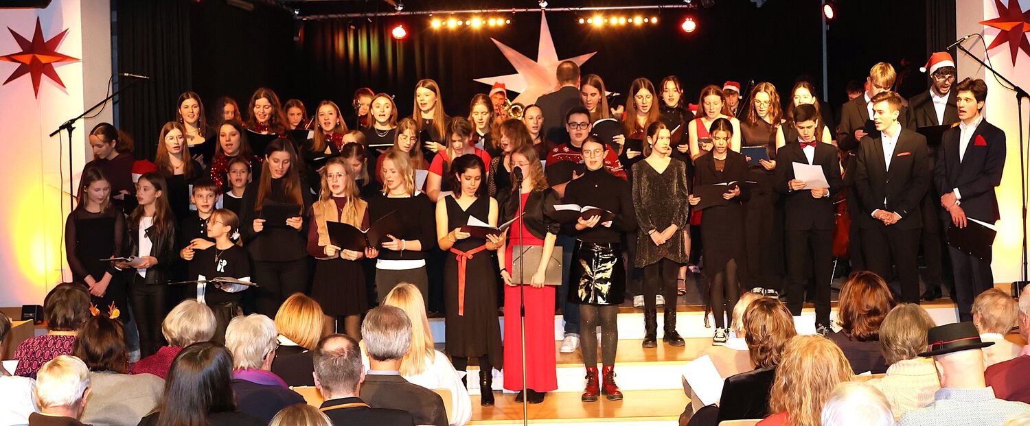 Ob nun die kraftvollen Chöre mit großer Innigkeit und ihren klaren Stimmen oder das Orchester sowie die Big Band mit fein abgestimmten und anspruchsvollen Arrangements überzeugten, immer wieder zeigte sich die hohe musikalische Qualität dieses Schulkonzerts (!). Gerade die ruhigen, getragenen Stücke wie „When Christmas Comes to town“ (Unterstufenchor) oder „Wonderfull Peace“ (Gesangsensemble) sorgten für jene stillen Momente, in denen man sich gedanklich bereits am Weihnachtsabend wähnte.
