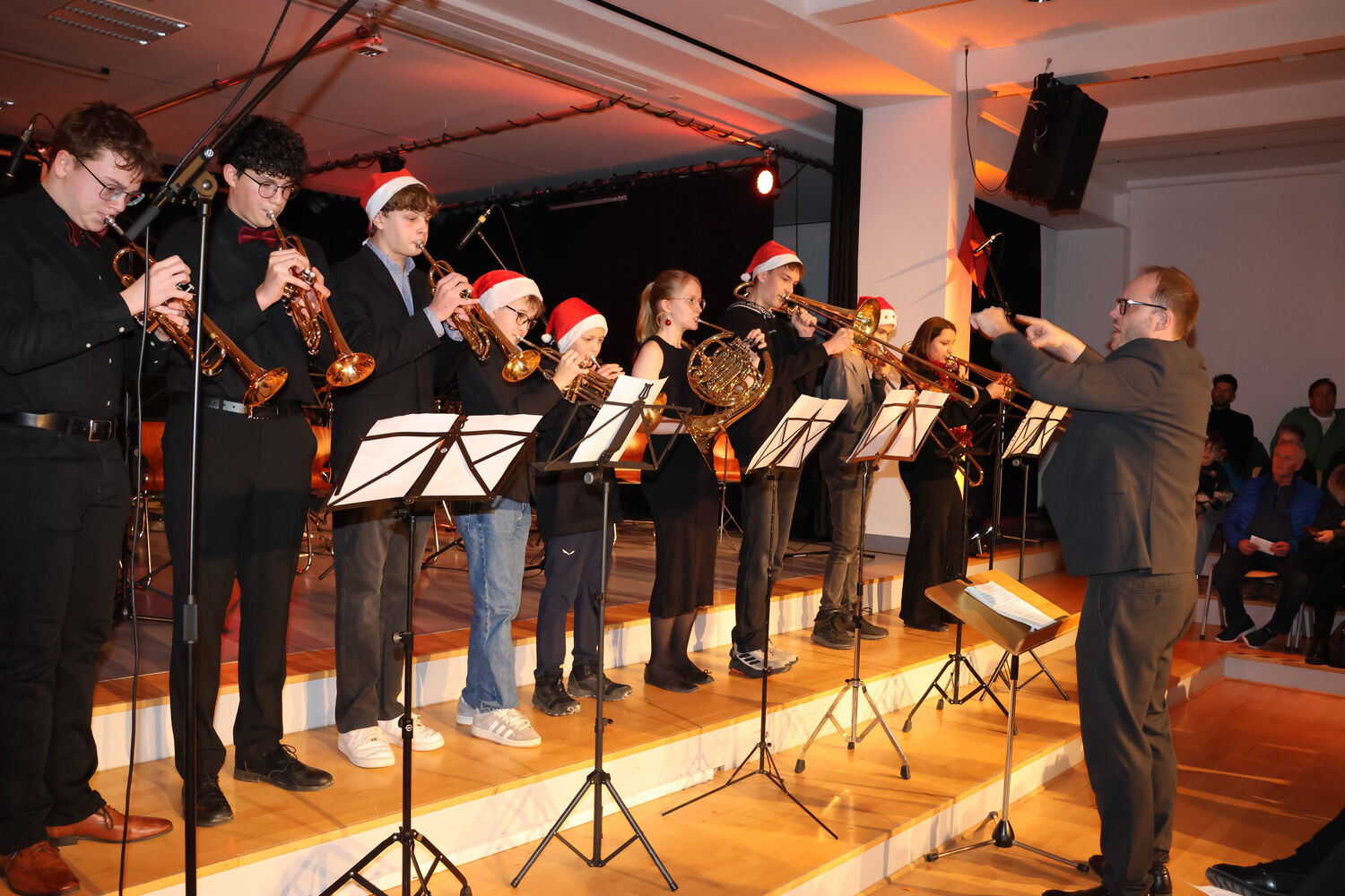 Den Höhepunkt dieser bildete auf jeden Fall das Weihnachtskonzert am vorletzten Schultag. Musiker, Techniker, das Dekoteam Kunst, aber auch das festlich gestimmte Publikum sorgten für einen Abend voller Atmosphäre. Den Auftakt bildeten die Blechbläser, die mit warmem, getragenem Sound auf alles Folgende einstimmten. Lebendig und vor allem bewundernswert zeigten danach die beiden Bläserklassen, was sie innerhalb nur weniger Wochen bzw. einem Schuljahr bereits an ihren Instrumenten gelernt haben.