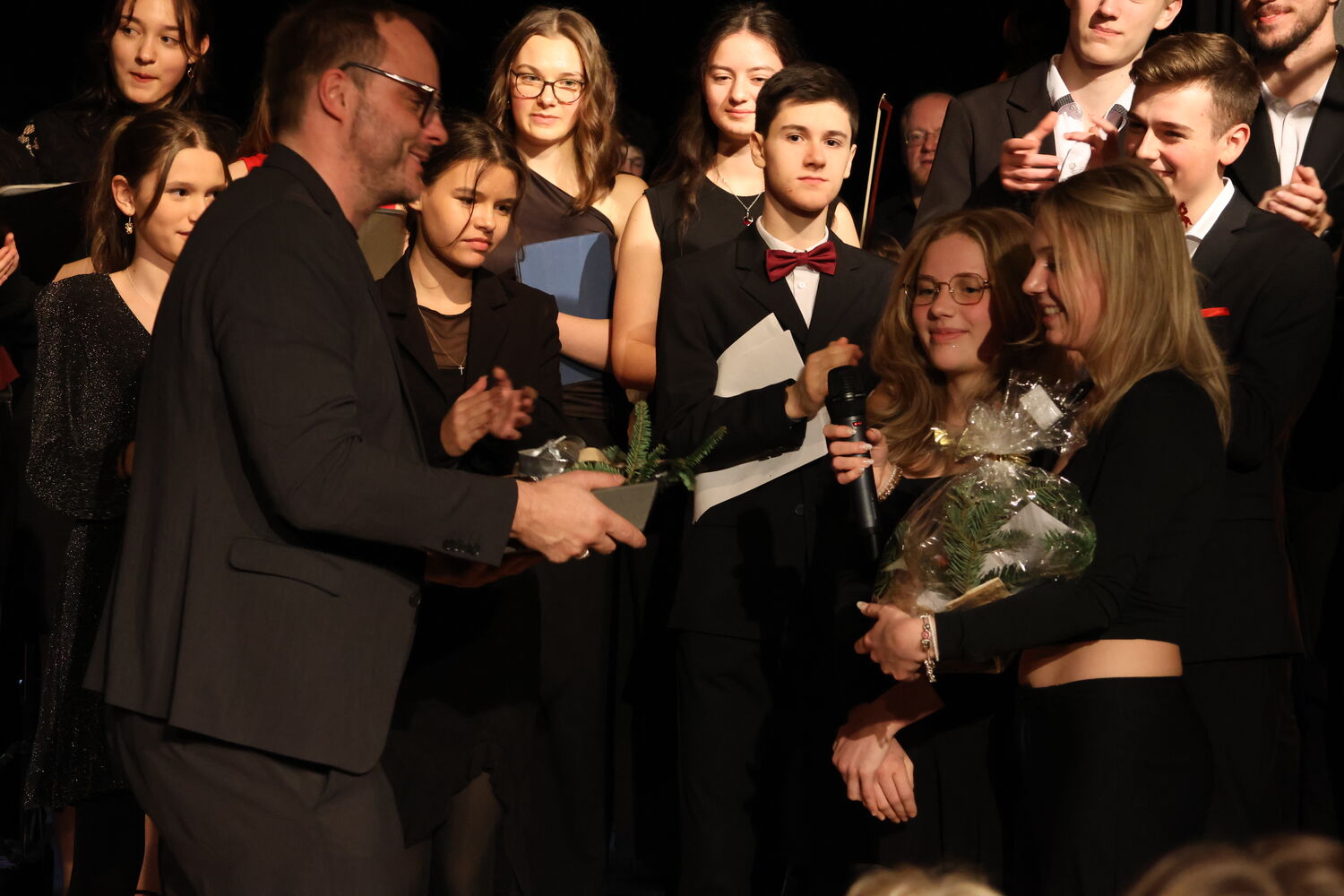 Eine intime, persönliche Note gaben dem Konzert die kleineren Ensembles und Solobeiträge. Stellvertretend für alle sei Adrijan K. (Q13) am Konzertflügel mit „Believe“ erwähnt. Seine Darbietung war kein musikalischer Vortrag, sondern eine technisch höchstversierte emotionale Erzählung.