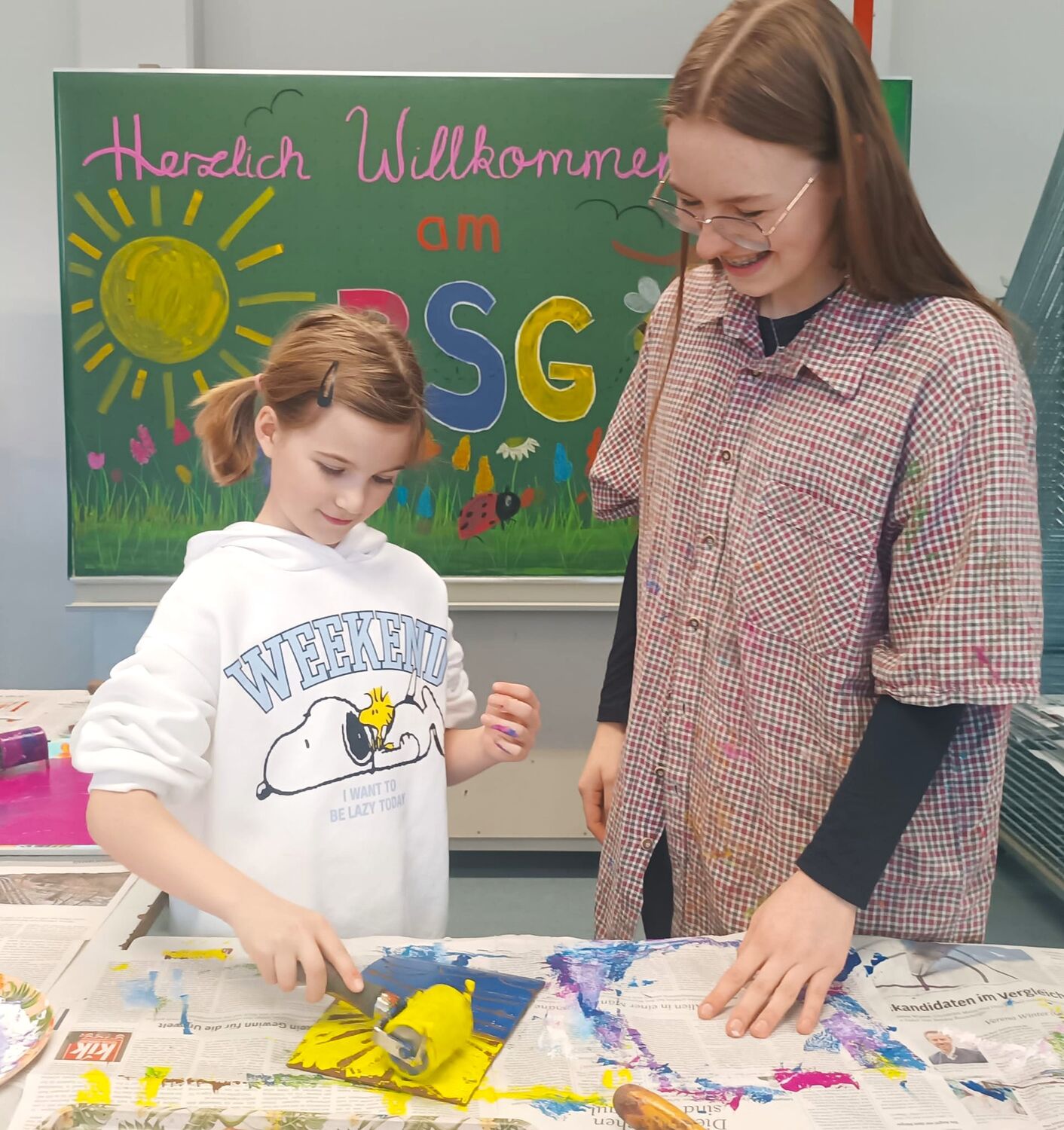 In Klassenzimmern, Fachräumen oder der Sporthalle warteten zahlreiche Mitmachstationen darauf, entdeckt zu werden. Überall wurde erklärt, ausprobiert, gestaunt und gelacht. Während hier experimentiert und geforscht wurde, knobelte man dort an kleinen Aufgaben, versuchte sich an verschiedenen Musikinstrumenten, betätigte sich künstlerisch oder erkannte, wie abwechslungsreich Sprachen am BSG unterrichtet werden. „Voll cool“ waren freilich die 3D-Brillen, die große Sporthalle mit all ihren Aktiv-Angeboten oder das Steinezertrümmern im Geo-Raum. Andere Besucher fanden das Lesi am spannendsten. Die wahren „Herzensbrecher“ konnten aber nur die Schulzootiere sein, die eingehend begutachtet wurden. Für den Neuzugang Chamäleon durften sogar Namensvorschläge abgegeben werden.