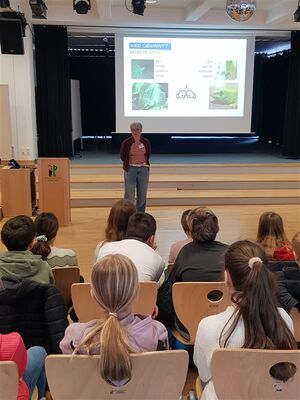 Noch viel mehr interessante Beispiele lernten die Schüler in einem sehr anschaulichen und kurzweiligen Vortrag kennen, bevor der praktische Teil folgte. Hier experimentierten die Sechstklässler selbstständig in Kleingruppen und erforschten die Vorteile der Stromlinienform, eben den Klettverschluss, den Lotuseffekt und den Einfluss des Auftriebs beim Fliegen.